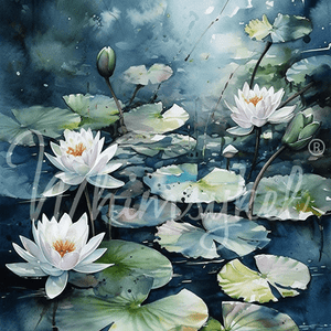 Blue Water lillies 21x 29 in | Whimsykel